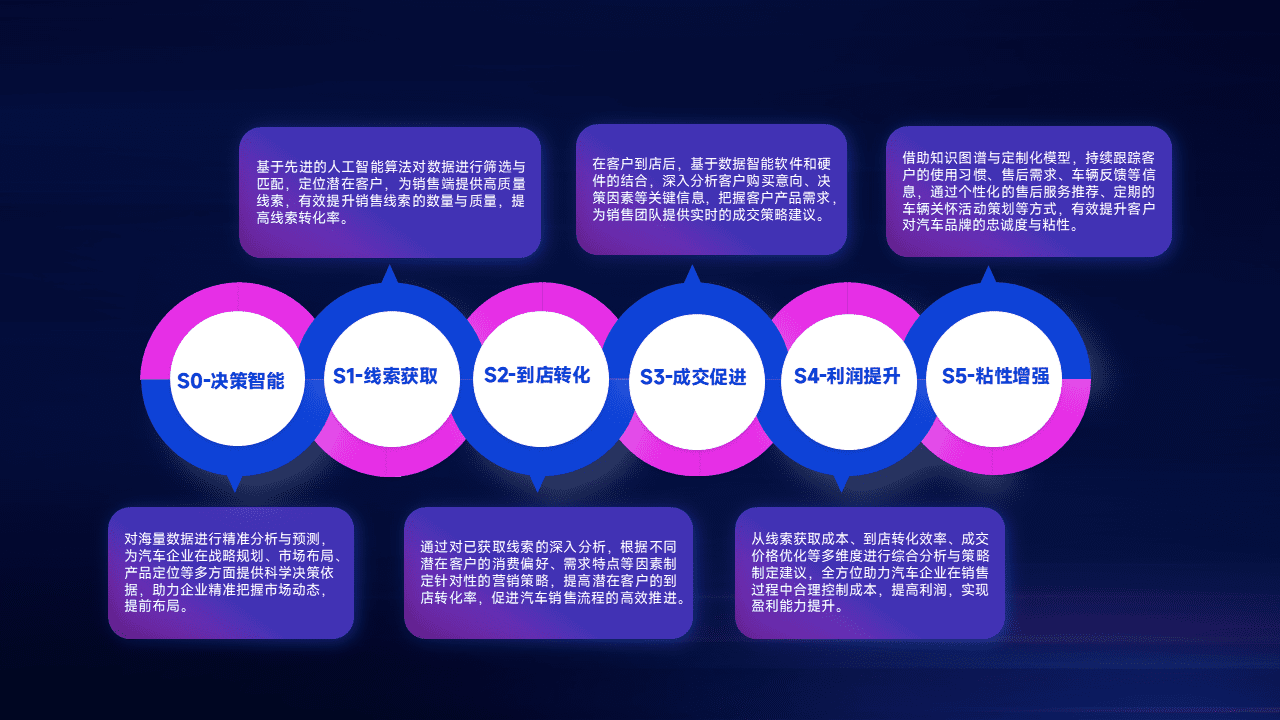 通过拓宽潜在客户来源、、、、优化线索分配并提高到店转化率,,,,以增强销售效率。。同时,,利用线索数据不断优化分析模型,,有效提升转化率,,,扩大营销影响力。。。。